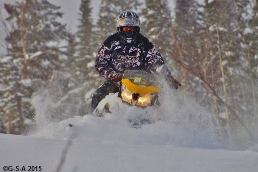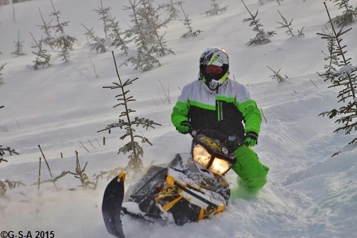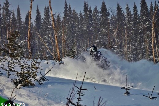 The ride wasn’t any easier into the backcountry. We ended up at 2500’ with a good 12”…..but where the wind blew was stupid deep. Close to 2 - 3 feet where the wind blew it. The day was spent driving with over the hood into the face pow. We rode for about 3 hours and the guys were soaked.