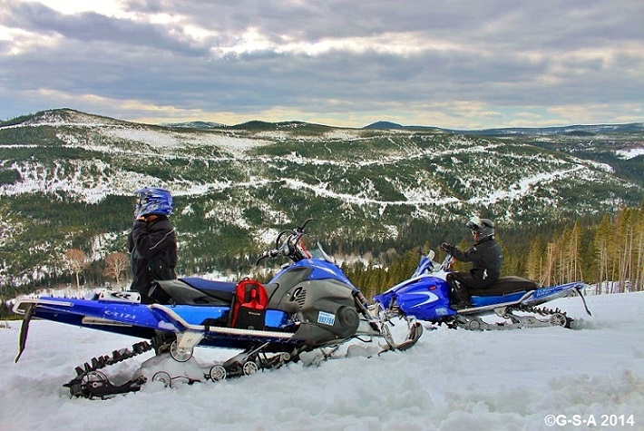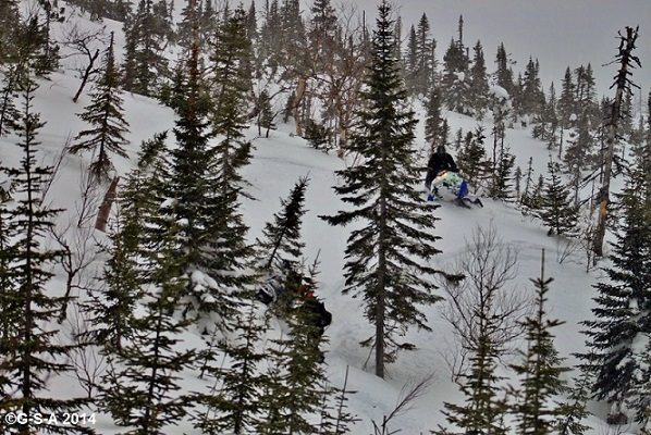 We had 2 bikes…… one a UFO snowbike the other a Timbersled...... the UFO had a 450 and the Timbersled had a 450 turbo. They were fun to see whip through the trees! Nope, the sleds can’t go everywhere these things can.