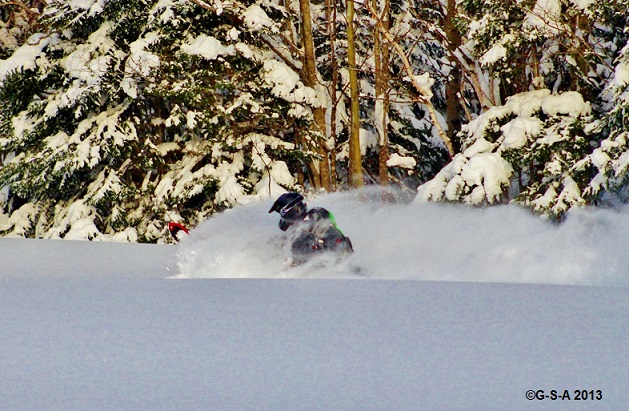 This is the way it is…..The snow falls sometimes more in the backcountry but also the opposite at times. Once you understand wind and where it snows more at times, you end up riding the deepest all the time. Some of the areas we ride are further into the interior of the Chic-Chocs than others. Sometimes closer to the coast is better than further inland – that’s why we chose multiple areas to ride.