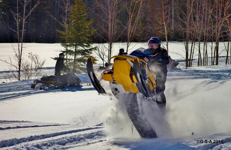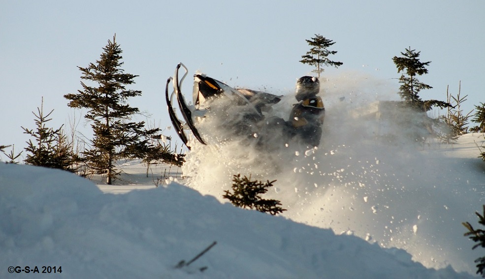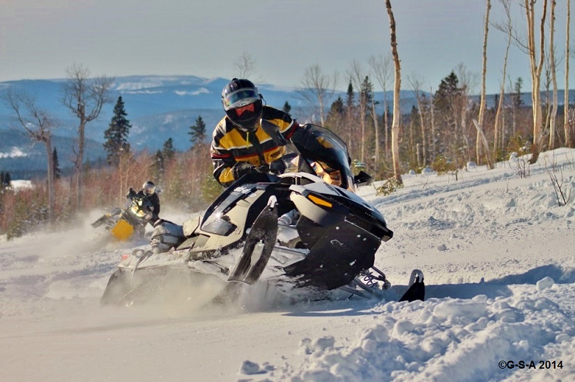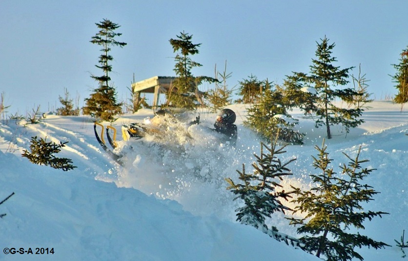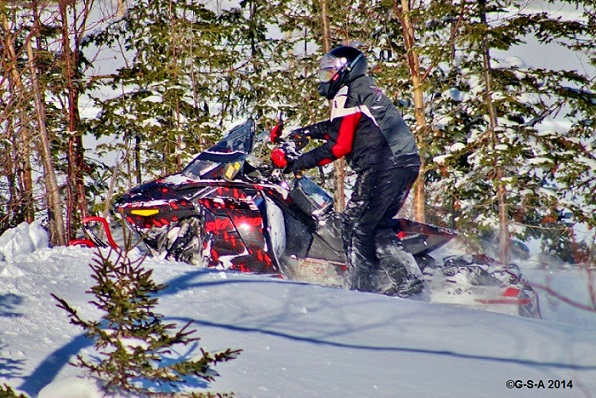 The guys did some riding in cuts too! They all wanted to try side-hilling. They did really well for guys on shorties. Yes, for here those sleds are shorties….. 2 X 1200 137 and also a 137 800 and a 900 4-stroke 137…..