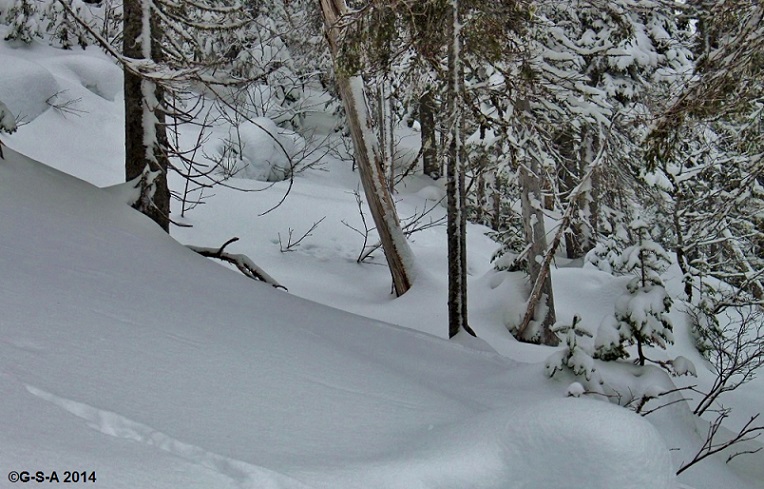 The climb to 2000’ went from 4” to more than 6” at the 2000’ mark. We got to the back and found some good snow that, again, was due to where the wind had blown it. Rode a bit but looked more for snow for some friends coming to ride……