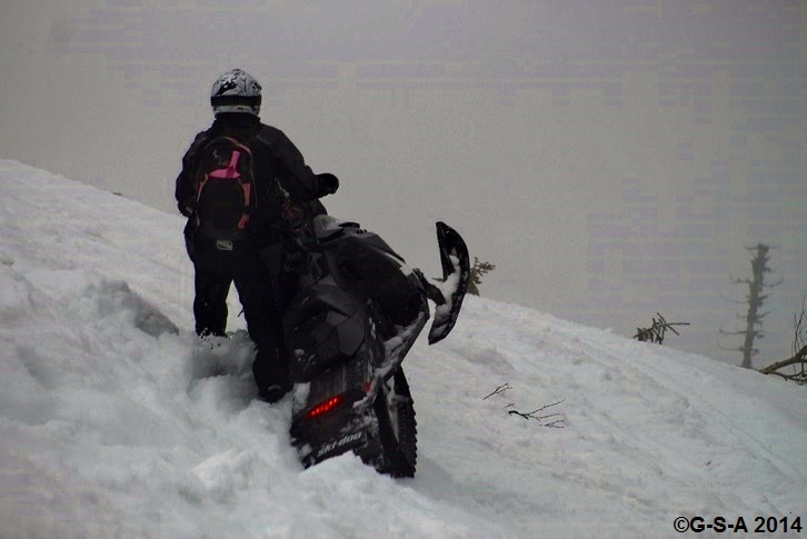 It was raining and we rode anyway….with temps at 8 C it was foggy too. The snow was pretty good…..would have been better if it would have been 12 – 15 C but still had a great time!