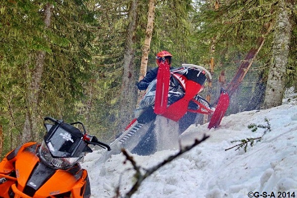 The ride on Sunday was nicer…..we rode from the same place with fog again. It rained but then……turned to SNOW! The snow on the road is a foot at 1500 ft, then two feet at 2000 ft, then 3 – 4 ft at 3500 ft ! For sure there is enough to get in another weekend……..yep, another group this weekend…… Tree riding all weekend!!.....and some jumps !!!!